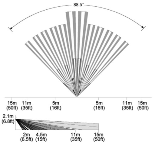Zastosowanie: Wewnętrzna ; Rodzaj czujnika: Pasywna podczerwień (PIR) ; Zasięg: 11 x 11 m ; Kąt detekcji: 88.5 ° ;