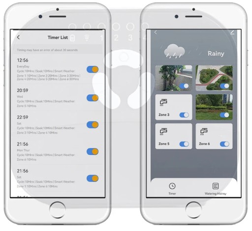 Dodatkowo, sterownik oferuje funkcje odroczenia podlewania ze względu na warunki pogodowe. Każda ze stref może mieć ustawiony indywidualny harmonogram nawadniania.