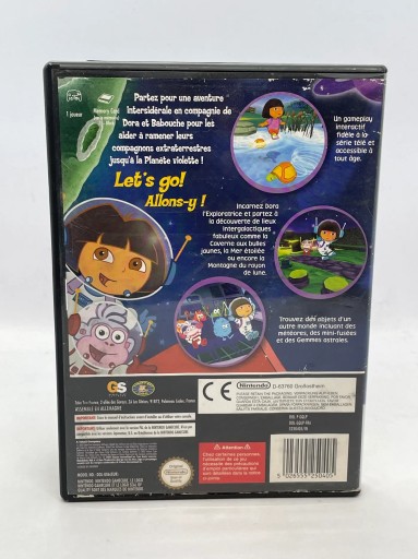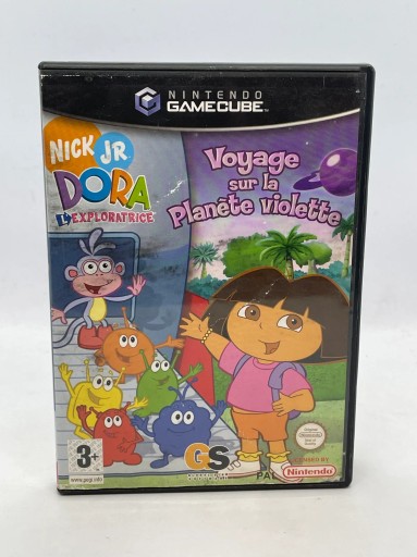 Dołącz do Dory i Butka w kosmicznej przygodzie Dora the Explorer: Podróż na Purpurową Planetę na Nintendo GameCube (angielski/francuski). Pomóż im zbierać klejnoty i naprawić statek kosmiczny, aby przyjazne kosmity mogły wrócić do domu.