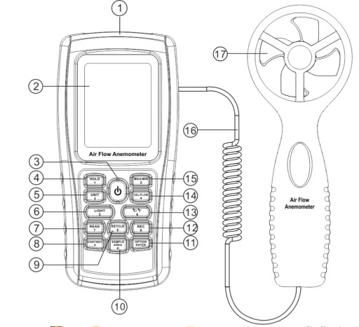 - Częstotliwość próbkowania prędkości: Numer sekwencyjny, miejsce wyświetlania średniej prędkości przepływu powietrza.