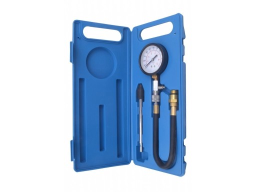 Uniwersalny zestaw do pomiaru ciśnienia sprężania w silnikach benzynowych. Całość zapakowana w praktycznej walizce