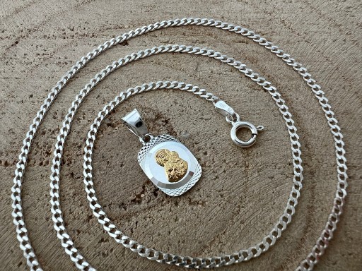 SREBRNY ZESTAW KOMUNIJNY ŁAŃCUSZEK Z MEDALIKIEM MATKA BOSKA CZĘSTOCHOWSKA