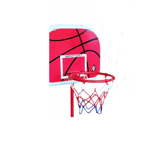Zestaw zawiera: podest, tablicę, obręcz z siatką, piłkę do gry, pompkę do piłki