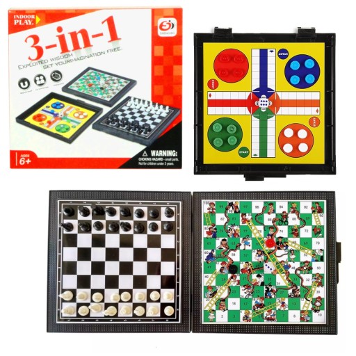 GRA MAGNETYCZNA ZESTAW 3 GIER NA MAGNES szachy chińczyk węże i drabiny