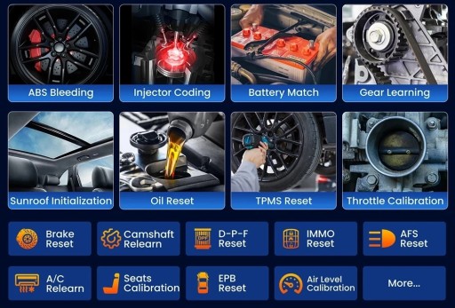 - Reset Adblue (filtr spalinowy diesla): Resetuje moc obliczoną katalizatora przechowywaną w ECU po wymianie lub uzupełnieniu płynu do obróbki spalin.