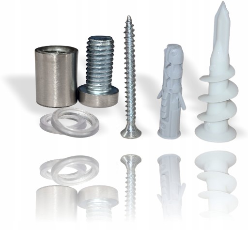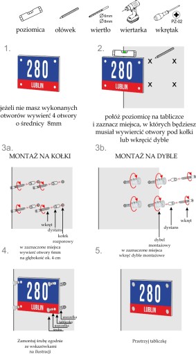 Dystanse i kołki montażowe umożliwiające montaż tabliczki