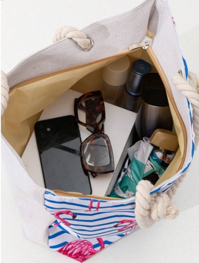 Torebka jest bardzo pojemna, a więc bez problemu zmieścisz w niej ręcznik, kocyk, buty, jedzenie, książki i wiele innych przedmiotów! ;)