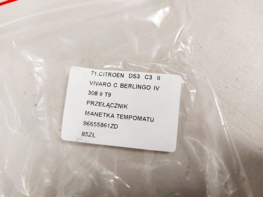 CITROEN DS3 C3 II VIVARO C BERLINGO IV 308 II T9 PRZEŁĄCZNIK MANETKA TEMPOMATU 96655861ZD