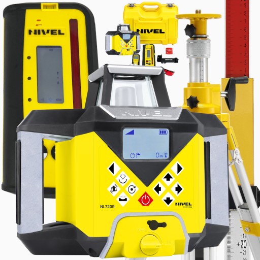 Niwelator wyznacza płaszczyznę poziomą (także pochyloną w 2 osiach), pionową, a zastosowany pionownik laserowy określa pion lub kąty proste. Sprzęt wyposażony został w system automatycznego wpasowania wiązki laserowej, dzięki czemu łatwiej ustawimy spadki (prace poziome) i wyszukamy kierunek (prace pionowe). Laser dobrze się sprawdza na długich odcinkach robót (zasięg 700 m), w trudnych warunkach terenowych – szybko poziomuje, jest odporny na drgania terenu. NL720R DIGITAL oferowany jest standardowo z czujnikiem cyfrowym, na którym różnice wysokości wyświetlane są cyfrowo. To w znacznym stopniu ułatwia i przyspiesza pomiary. Sprzęt wyposażony jest w intuicyjny interfejs z wyświetlaczem LCD, obsługa może być zdalna za pomocą pilota radiowego.