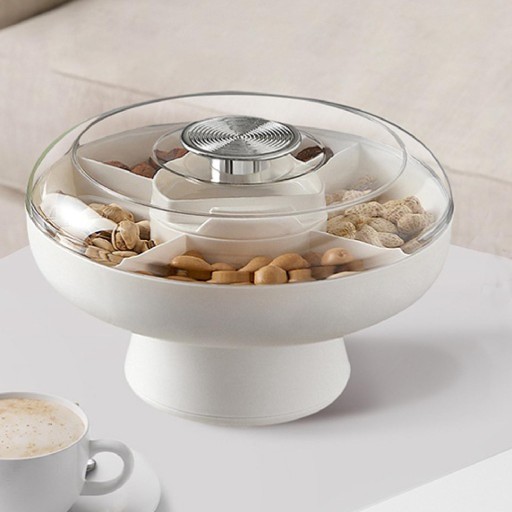 [Innowacyjna konstrukcja obrotowa]: Ten talerz na suszone owoce z funkcją obrotu o 360° umożliwia łatwe obracanie tacy, aby dotrzeć do wybranej przekąski, dzięki czemu podjadanie będzie wygodniejsze.