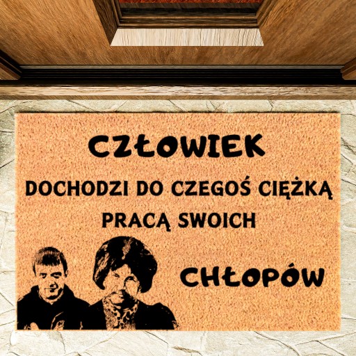 - wycieraczka z włosiem kokosowym z grawerowanym wzorem to świetny pomysł na prezent, szczególnie ze względu na swoje praktyczne zastosowanie