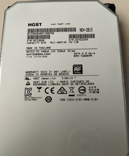 HGST 8TB SATA DRIVE HUH728080ALE604