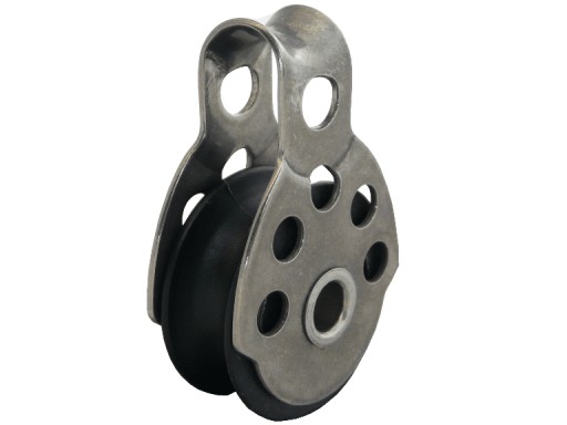 Pojedynczy bloczek nierdzewny z trwałą rolką z tworzywa sztucznego.
