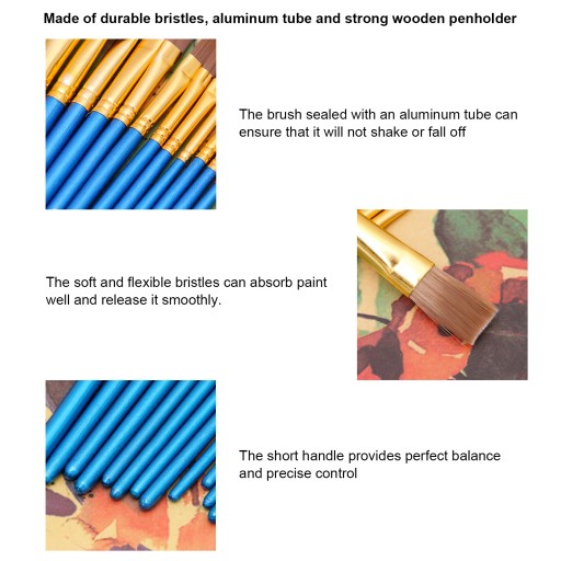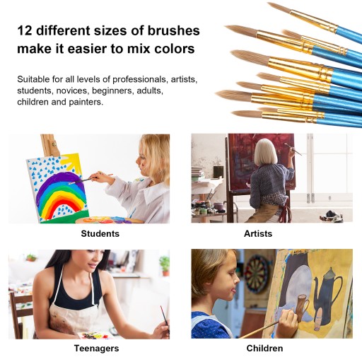 1. 12 różnych rozmiarów pędzli uatwia mieszanie kolorów i sprawia, że zawsze masz pod ręką pędzel odpowiadający Twoim potrzebom malarskim.