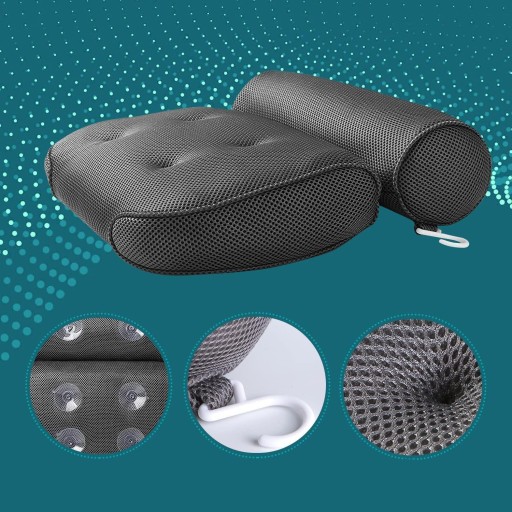 🛀 Odpowiedni rozmiar: poduszka do wanny rozmiar to 36 cm x 30 cm x 10 cm. Duży rozmiar poduszki kąpielowej poprawia ogólne wsparcie części ciała. Nie będziesz czuć się niekomfortowo, gdy miękka, nie szorstka poduszka dotyka skóry. Ponadto przyssawka i akcesoria do wanny są ze sobą połączone podczas prania w pralce, a przyssawka poduszki kąpielowej nie zostanie zerwana.