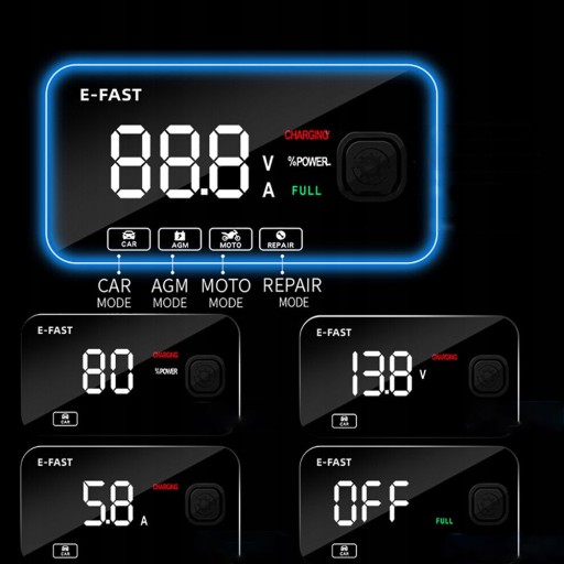 Automatyczne ładowanie: Wbudowany czujnik temperatury inteligentnie dostosowuje się do temperatury otoczenia i automatycznie dostosowuje prąd ładowania; Ładowarka pokładowa z łatwością radzi sobie z różnymi trudnymi warunkami napięciowymi. Nie jest wymagane ręczne ustawienie, ładowanie zatrzymuje się automatycznie, gdy akumulator jest w pełni naładowany