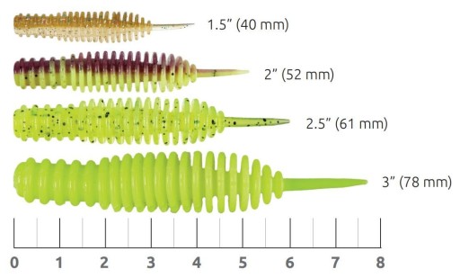 Imitacja robaka z obszernym prążkowanym ogonem, który dzięki dużej ilości segmentów bardzo realistycznie wibruje.