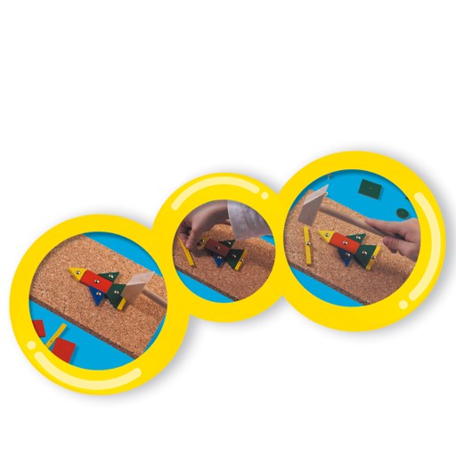 Stuku-Puku to klasyczna zabawka wykorzystująca elementy drewniane, które dziecko wbija w korkową tablicę za pomocą młoteczka. Stuku-Puku jest zabawka ogólnorozwojową - pozwala rozwijać motorykę mniejszą dziecka, poprawia jego koncentrację i precyzję, pobudza wyobraźnię, uczy rozpoznawać figury geometryczne oraz kolory. Zestaw zawiera: korkową tablicę, drewniane figury geometryczne, młotek, pineski. Zestaw odpowiedni dla dzieci w wieku powyżej 3 lat. Wyprodukowano w Holandii.