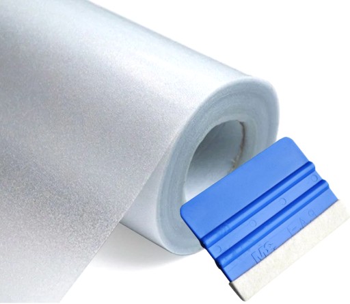 Folia okleina mleczna szroniona szkło mrożone MAT FROST w wymiarze 100 x 105 cm + kompletny zestaw do aplikacji folii.