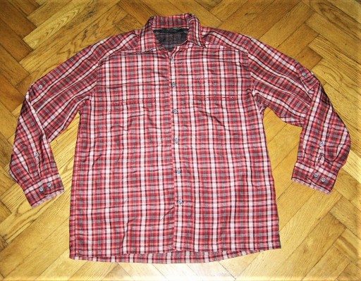 Zapinana na guziki , ZAPINANA na zamek 2 kieszenie na piersi , tradycyjny kroj , wywietrzniki na plecah pod zakladkami , LEKKA , termoaktywna, Swietna na upaly , BARDZO Nowoczesne WZORNICTWO Stan B.DOBRY Tylko Do kosmetycznego wyprania ! Zycze udanej licytacji !