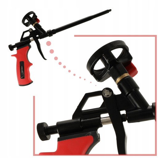Dzięki pokrętłu regulacji przepływu, możesz dostosować strumień piany, idealnie dopasowując ilość materiału do konkretnej pracy. Precyzyjna końcówka gwarantuje dokładne i celne nakładanie pianki w wybranych miejscach.