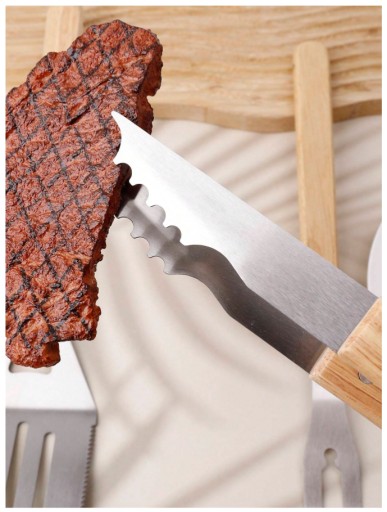3 częściowy zestaw składa się z szczypiec, szpatułki i szpikulca do mięsa. Sztućce zostały wykonane ze stali nierdzewnej o wysokiej jakości, co gwarantuje trwałość i odporność na korozję, nawet w trudnych warunkach grilowania. Dodatkowo, rączki sztućców zostały wykonane z drewna, co nie tylko zapewnia solidny i pewny chwyt, ale także dodaje im elegancji i naturalnego uroku..