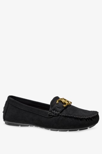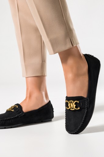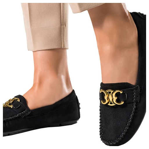 Czarne mokasyny damskie model D24X3-B zostały wykonane z wysokogatunkowego zamszu ekologicznego co gwarantuje doskonałą jakość, wygodę i dopasowanie do stopy. Przejdź do świata klasy i wyrafinowania z naszymi mokasynami. To prawdziwe arcydzieło dla każdej kobiety ceniącej sobie eleganckie, a zarazem wygodne obuwie. Płaska podeszwa zapewnia komfort noszenia przez cały dzień. Bez względu na to, czy przemierzasz ulice miasta, czy spędzasz dzień w biurze, nasze mokasyny gwarantują maksymalny komfort. Płaska podeszwa minimalizuje obciążenie stawów, co czyni je idealnymi dla tych, którzy są w ciągłym ruchu. Obuwie wsuwane jest proste w zakładaniu i zdejmowaniu co sprawia, że są one doskonałym wyborem dla tych, którzy cenią sobie prostotę i funkcjonalność w jednym. Skórzana wkładka dopasowuje się do naszego kształtu stopy, tym samym zapewniając nam przyjemność z chodzenia. Złota ozdoba dodaje mokasynom niepowtarzalnego uroku, to wyrafinowany detal, który nadaje mu dodatkowej klasy i wyróżnia go na tle innych. Zaokrąglony czubek jest nie tylko modny, ale także zapewnia dodatkową przestrzeń dla palców, oferując pełen komfort podczas noszenia. Lekkość tych mokasynów gwarantuje, że czujesz się, jakbyś chodziła na chmurkach. Są doskonałym towarzyszem na długie dni pełne aktywności. Postaw na błysk z naszymi wyjątkowymi mokasynami.