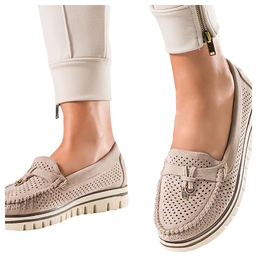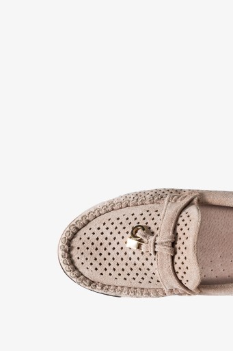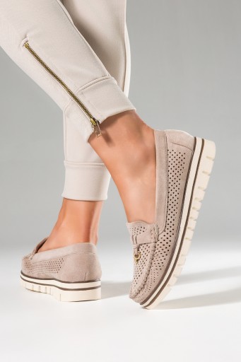 Beżowe mokasyny damskie model D24X5-BE zostały wykonane z wysokogatunkowego zamszu ekologicznego co gwarantuje doskonałą jakość i dopasowanie do stopy. Odkryj elegancję dzięki najnowszej kolekcji ażurowych mokasynów. Te wyjątkowe wsuwane buty, są idealnym rozwiązaniem dla kobiet ceniących sobie szykowny design i niezrównaną wygodę. Wzór, który proponujemy, zostały starannie zaprojektowane z myślą o wielbicielkach klasyki z nutką nowoczesności. Dzięki zaokrąglonemu czubkowi, te mokasyny doskonale komponują się z każdym rodzajem stopy, zapewniając optymalne dopasowanie. Ażurowy wzór nie tylko dodaje butom lekkości i świeżości, ale także umożliwia stopie oddychanie, co jest szczególnie ważne w cieplejsze dni. Delikatna ozdoba na cholewce subtelnie podkreśla ich unikatowy charakter, nie przytłaczając jednocześnie całościowej estetyki buta. Solidna bieżnikowana platforma gwarantuje przyczepność i stabilność na różnych powierzchniach, zapewniając bezpieczeństwo kroku w miejskim zgiełku. Jest to idealna propozycja dla aktywnych kobiet, które cenią sobie dynamikę życia, ale nie chcą rezygnować z eleganckiego wyglądu. Wkładka wykonana ze skóry zapewnia komfort nawet podczas całodniowego użytkowania. Dzięki temu Twoje stopy mogą doświadczyć uczucia miękkości i luksusu, które trudno porównać z innymi materiałami. Wybierając beżowe mokasyny ażurowe, inwestujesz w buty, które łączą w sobie piękno i funkcjonalność. Zadbaj o swoją garderobę i dodaj jej stylowego charakteru z tymi wyjątkowymi mokasynami. Czy to klasyczny dzień w pracy, spontaniczne wyjście z przyjaciółmi, czy relaksujący spacer po mieście – te buty będą Twoim niezawodnym partnerem.