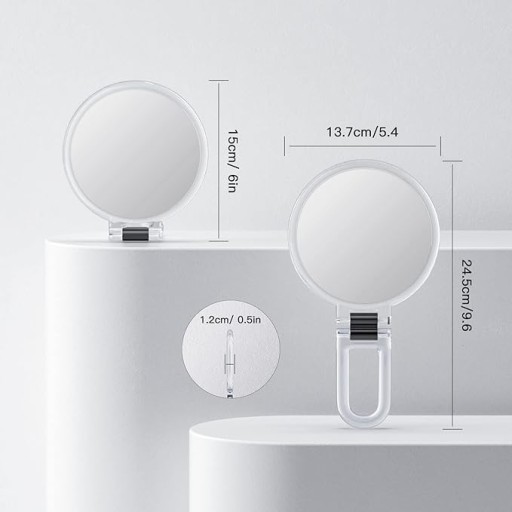 Ręcznie składane, kompaktowe lusterko. Z jednej strony powiększenie 10x a z drugiej normalne. Dzięki sprytnemu uchwytowi, możesz postawić je na biurko albo powiesić na ścianie.