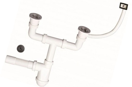 WYSOKIEJ JAKOŚCI SYFON ZLEWOZMYWAKOWY PODWÓJNY Z PRZELEWEM Z PLASTIKOWYM SITKIEM - SYF035