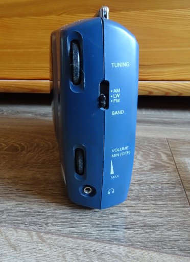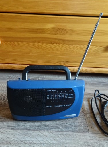Przenośne radio z wysuwaną anteną, wygodny uchwyt.