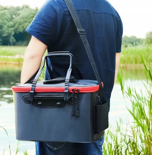 WIADRO WĘDKARSKIE na ryby żywe składane z pokrywą torba pojemnik 23l