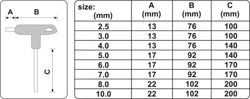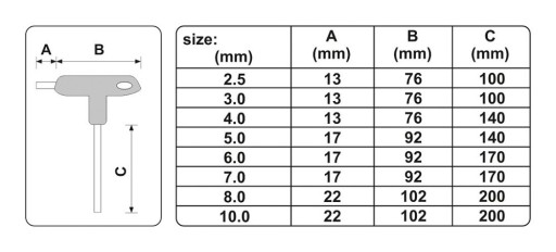 Profesjonalny zestaw kluczy trzpieniowych HEX z rękojeścią. Zestaw zawiera 8 elementów. Rozmiary 2,5mm, 3mm, 4mm, 5mm, 6mm, 7mm, 8mm 10mm. Trzpienie wykonane są ze stali S2. Niezastąpiony zestaw w warsztacie samochodowym i mechanicznym.
