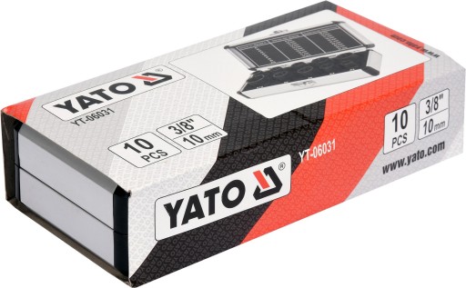 Numer indeksu YT-06031 Marka Yato Długość [mm] 27 Opakowanie kasetka aluminiowa Rozmiar [mm] 9, 10, 11, 12, 13, 14, 15, 16, 17, 19 Rozmiar napędu [cal] 3/8" Ilość elementów [szt.] 10