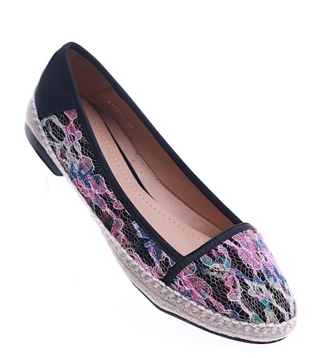 CZARNE DAMSKIE BALERINKI Z KORONKĄ 13991