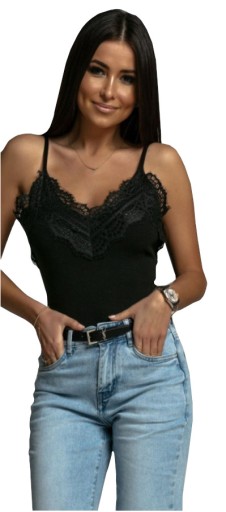 Śliczny stylowy top z koronką na ramiączkach. Stylowa i seksowna kreacja dla każdej kobiety. Bawełniane bardzo wygodne elastyczne, wykończone falbanką