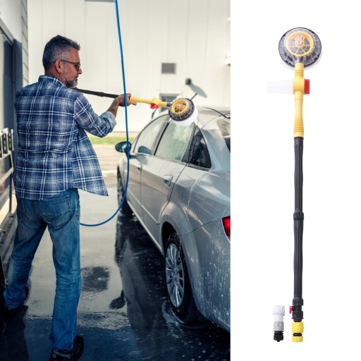 Ten automatycznie obracający się wylot wody nie potrzebuje prądu. Oszczędza czas i energię. Woda wpływa do rury, wysokie ciśnienie napędzające zmusza wodę do pchania przekładni i sprawia, że działa ona automatycznie. Obrotowy mop w stylu dwesign i pulchna główka szczoteczki mogą dokładnie czyścić, szczególnie dużą zdolność pochłaniania wody, chroniąc farbę.