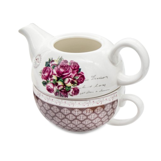 Dzbanek 450ml z filiżanką i spodkiem Bella Fiore róże tradycyjny imbryk