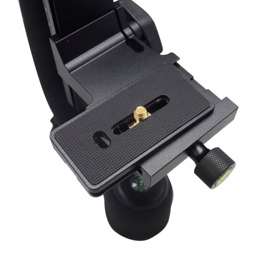 Zawiera standardową płytkę szybkiego zwalniania typu Arca-Swiss i wbudowany kompas
