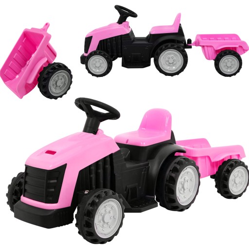 TRAKTOR NA AKUMULATOR Z PRZYCZEPĄ DLA DZIECI TRAKTOREK POJAZD PRZYCZEPKA RÓŻOWY