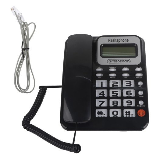 Telefon przewodowy ABS GY T2020CID z głośnikiem i wyświetlaczem identyfikatora rozmówcy (czarny)