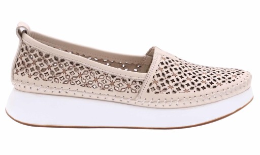 ORTOFARM sklep firmowy - Komfortowe buty damskie, letnie mokasyny, profilaktyczne w całości wykonane ze skóry licowej, ogólnego przeznaczenia. Wierzch wykonany z naturalnej, certyfikowanej i atestowanej skóry licowej odpornej na uszkodzenia mechaniczne, zapewniającej bardzo dobrą przepuszczalność powietrza oraz komfort. Wnętrze w całości wyłożone miękką skórą bardzo dobrze dopasowuje się do kształtu anatomicznego stopy. Wkładka wewnętrzna ze skóry, testowana dermatologicznie, zawiera środek bakteriobójczy oraz składniki na bazie węgla drzewnego, dzięki czemu pochłania nieprzyjemny zapach i zabija bakterie. Spód wykonany z bardzo lekkiego i elastycznego tworzywa, termokauczuk, zapewniającej doskonałą sprężystość i wysoki komfort użytkowania. Obuwie szczególnie polecane dla osób o stopach wrażliwych i alergicznych. ORTOFARM - wygodne buty w dobrym stylu.