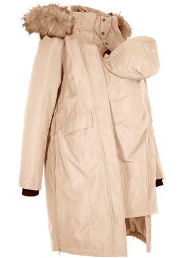 Informacje dodatkowe: Płaszcz ciążowy /z wstawką na nosidełko, ocieplany, ze zrównoważonego materiału, nadaje się do noszenia przez całą ciążę i po porodzie z wstawką na nosidełko niemowlęce. Z przodu zapięcie na zamek, po bokach zamki do regulacji obwodu.