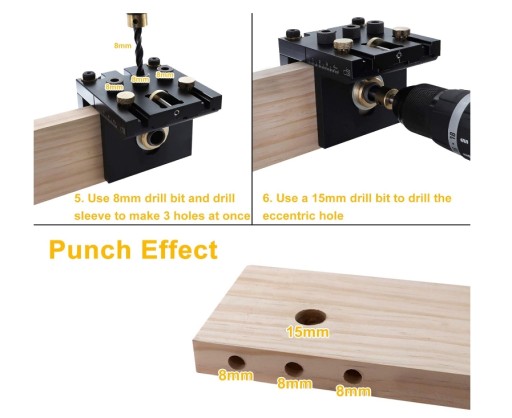 Łatwa obsługa, szybkie pozycjonowanie dla różnych grubości drewna, łatwe łączenie. WSZECHSTRONNE ZASTOSOWANIE: Twórz idealne otwory w drewnie i naprawiaj drewniane szwy dla profesjonalnych stolarzy i do użytku domowego. Nasze klucze samocentrujące mogą być używane do szerokiej gamy szuflad kuchennych, szafek, szaf, uchwytów drzwiowych, ograniczników i frontów szuflad.