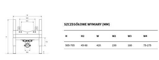 Produkt daje możliwość zamontowania bidetu wiszącego na ścianie pełnej lub z płyty gipsowo-kartonowej oraz na szynie nośnej ściany lekkiej. Dopasowany jest do wszystkich bidetów o uniwersalnych rozstawach śrub 180 lub 230 mm.