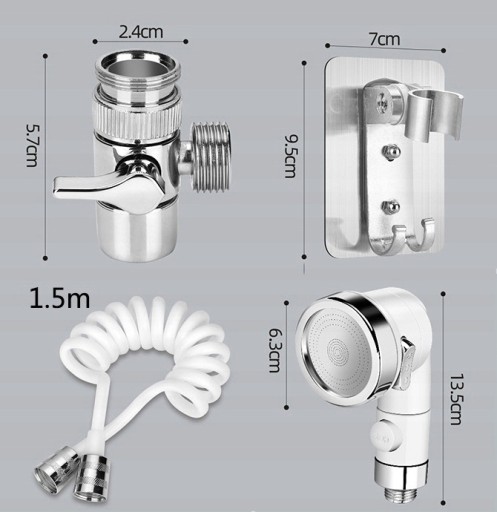 Ta głowica prysznicowa jest wyposażona w kompletny zestaw, w tym 1 głowicę prysznicową, 1 prysznic, wąż 1,5 metra, 1 samodzielny stent prysznicowy i akcesoria instalacyjne. Nadaje się do portu oleju spiralnego G1/2, F20, F22, M20, M22, M24. Można zainstalować w kuchni, łazience, ogrodu, garażu itp. Jest bardzo odpowiedni do czyszczenia i umycia włosów.