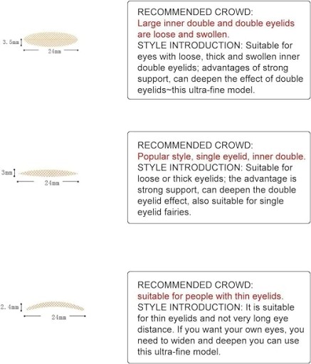 - Natychmiastowy podwójny eyelid- Wodoodporne i naturalne, niewidoczne naklejki. Dostępne są 3 rodzaje podwójnych naklejek na powieki, a ich ilość jest wystarczająca, co jest praktyczne do codziennego użytku i wymiany.