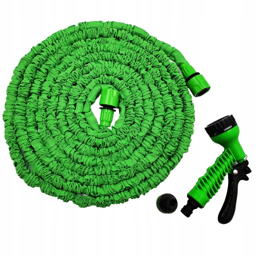 Przedstawiamy rozciągliwy wąż ogrodowy wykonany z elastycznego materiału. Wąż jest odporny na działania różnych czynników pogodowych.