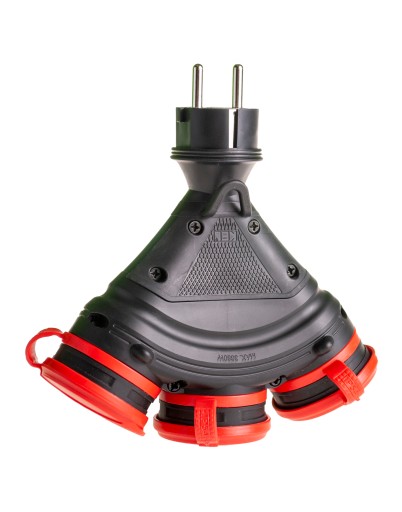 PS Rozgałęźnik trzykrotny z klapką hermetyczną, 3x 2p+Z, IP54, EXTREM, rozberialne, CZARNO-CZERWONY.
