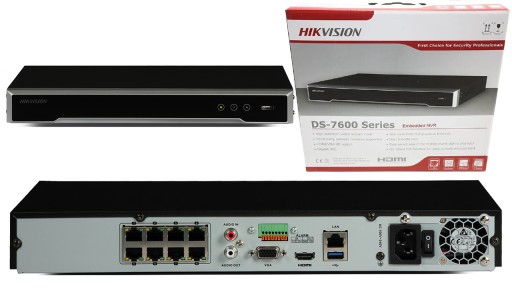 Rejestartor klasy NVR z wbudowanym switchem PoE dla 8 kamer IP.